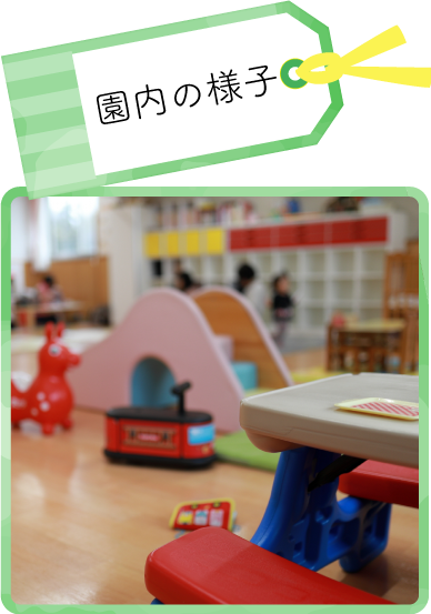 ごっこ遊びや体力遊びなど室内で様々な遊びに対応できるプレイハウスを設置しております。
